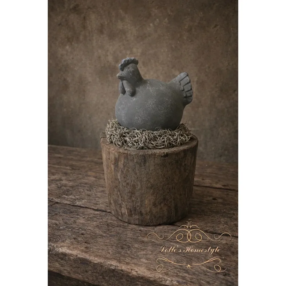 Houten Vijzel met Stenen Kip – Landelijke Decoratie