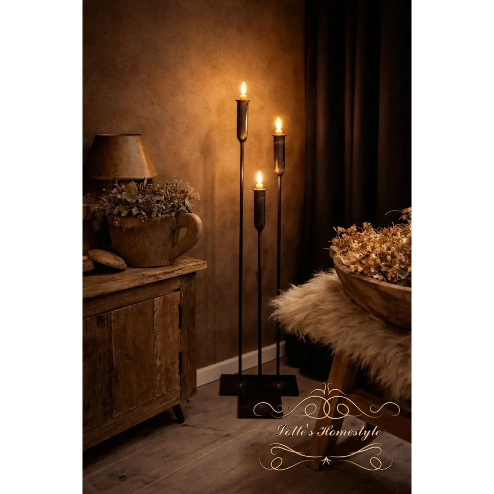 Combineer deze landelijke vloerkandelaars met andere woonaccessoires, rustieke decoratie en natuurlijke materialen zoals hout, linnen of keramiek voor een complete en sfeervolle ambiance. Bestel eenvoudig online bij Lotte’s Homestyle en geef je huis die warme, gezellige uitstraling die iedereen waardeert.