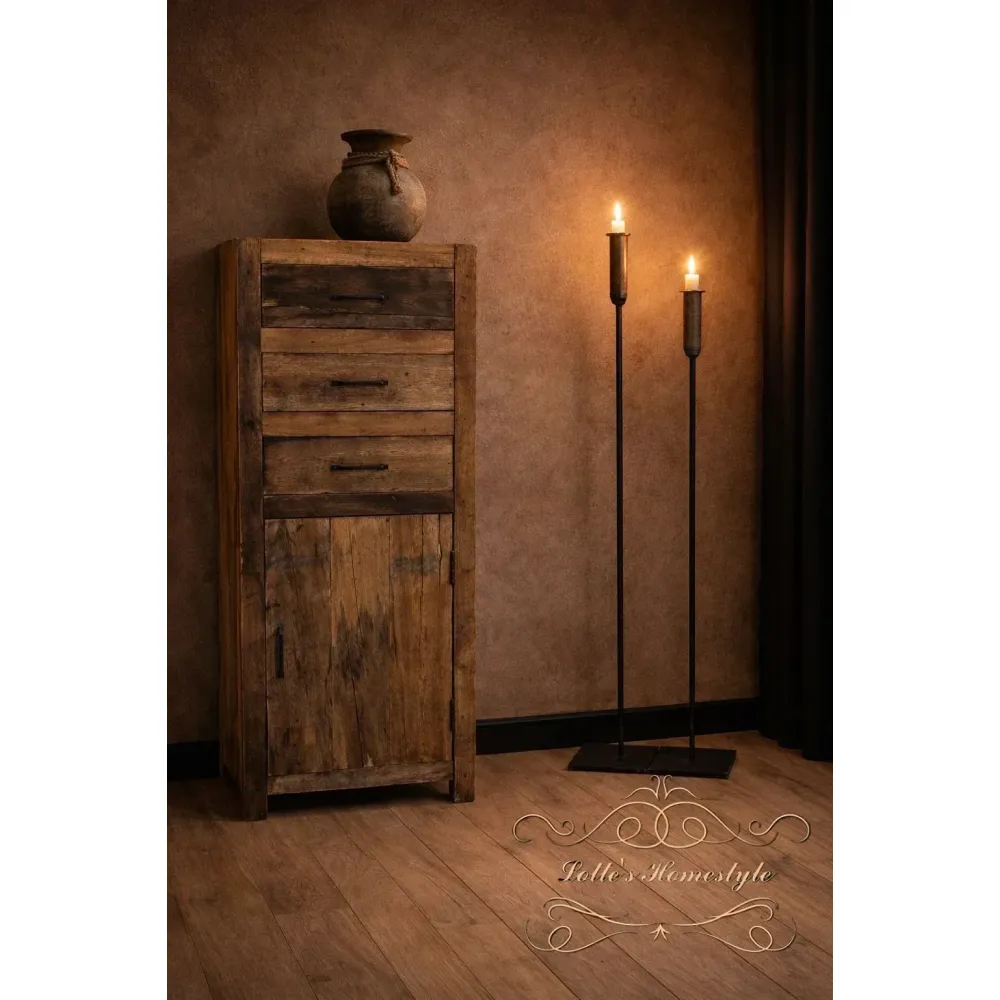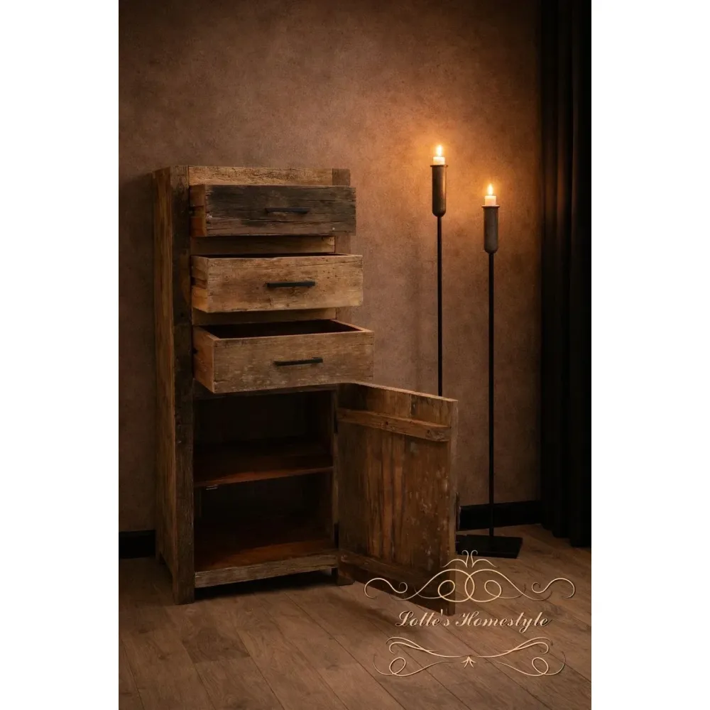 De truckwood ladekast is gemaakt van oud gerecycled hout en straalt karakter en warmte uit.
