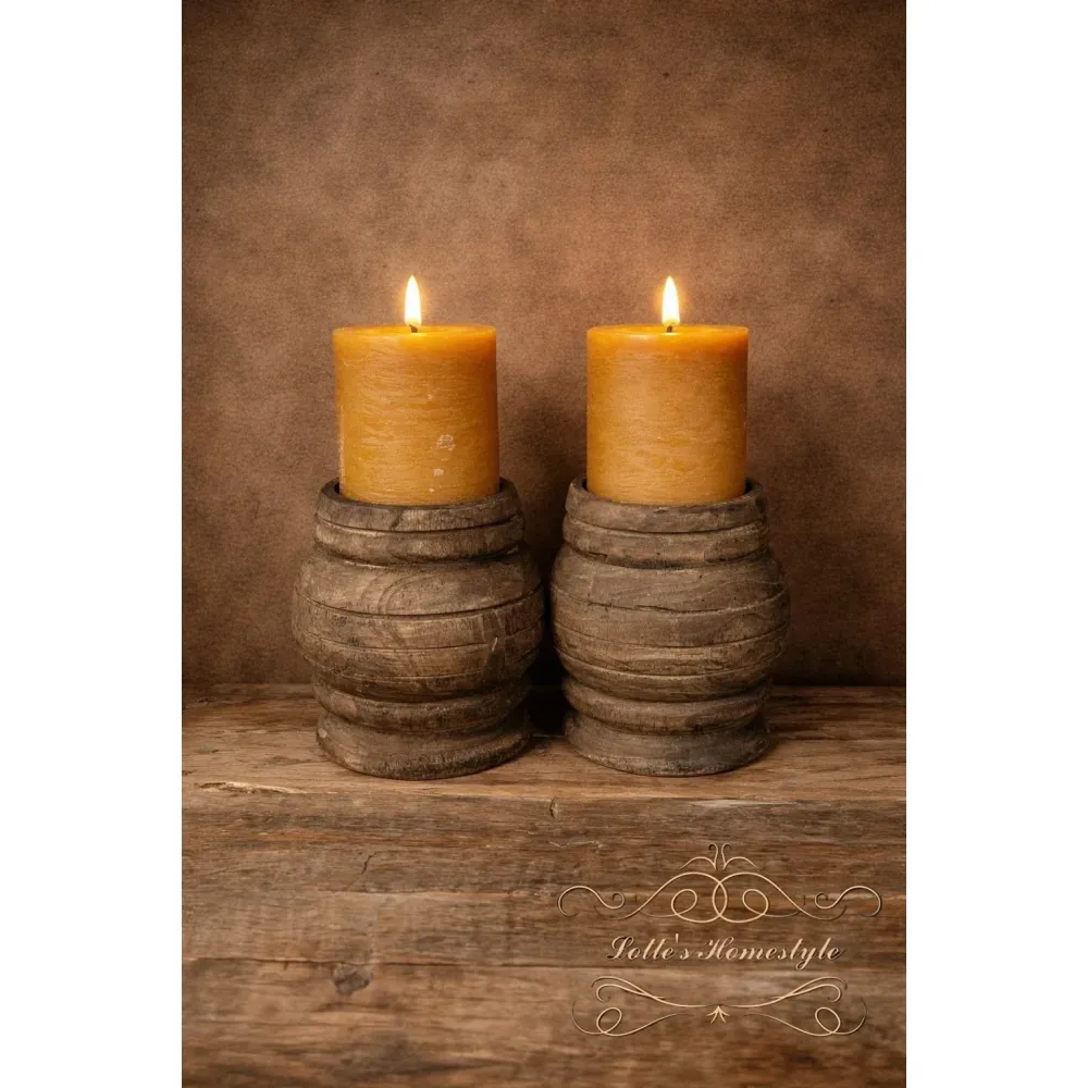 De houten kaarsenstandaards zijn robuust, handgemaakt en hebben een natuurlijke landelijke uitstraling.